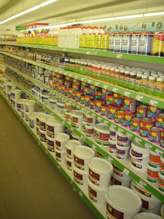 Für den Raiffeisenmarkt wurden gebrauchte und neue Regale verwendet. Schwerlast- und Leistenregale sind TEGO-Regale und Neuware.